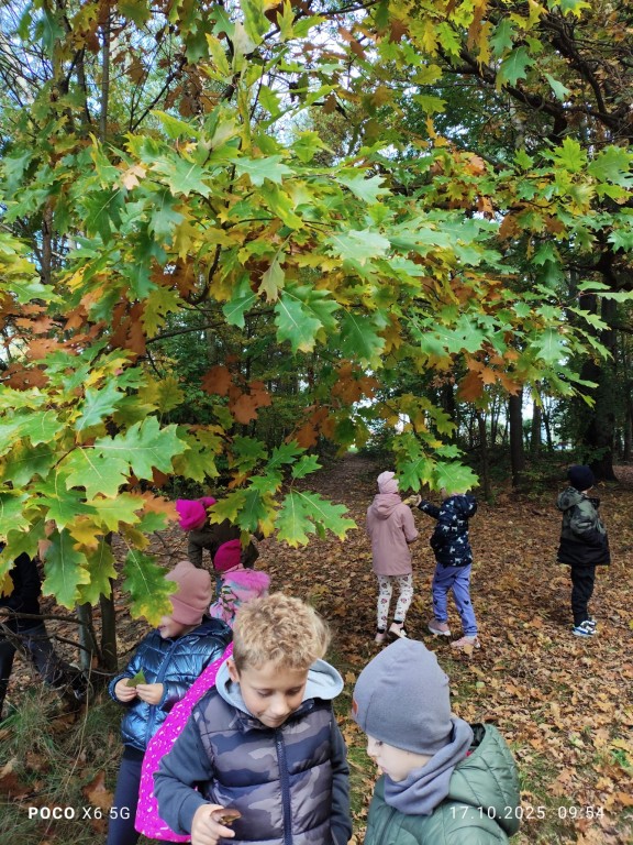 przez działanie. Spacerując leśnymi alejkami zbieraliśmy dary jesieni: kolorowe liście,