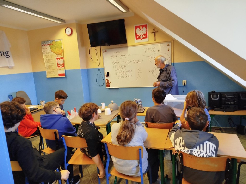 Dziś odbyły się pierwsze zajęcia wprowadzające, podczas których gościliśmy Pana Antoniego Dudę, koordynatora projektu w Rybniku z ramienia Klubu Młodego Odkrywcy „Akademia Techniczna Małolata”. Opowiedział on uczniom o idei Moon Camp, możliwościach działania, kryteriach projektowania i wyzwaniach związanych z życiem na Księżycu.