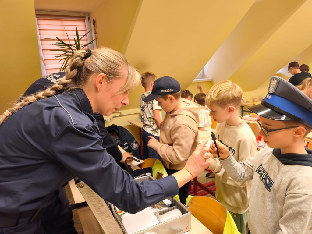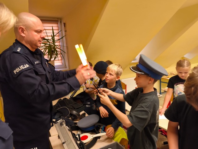 dzieciom o swojej pracy oraz o tym, na czym polega służba policjanta i policjantki.