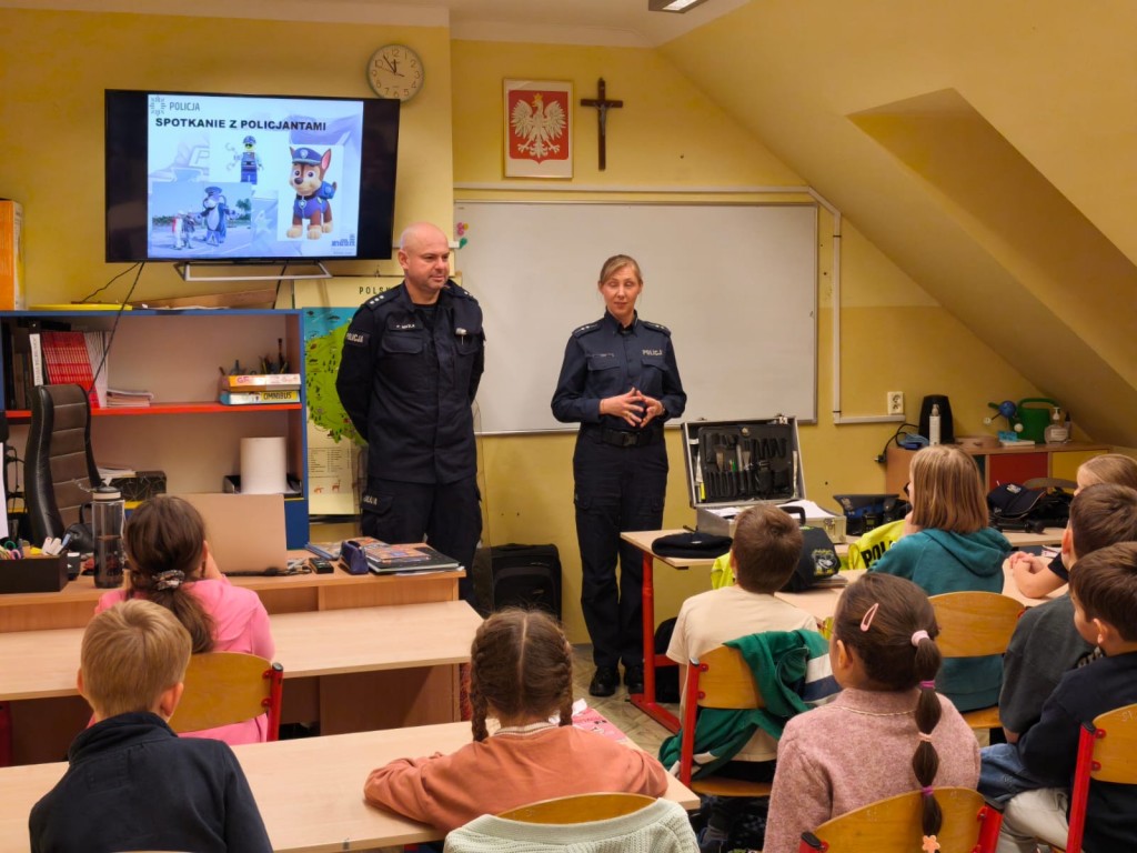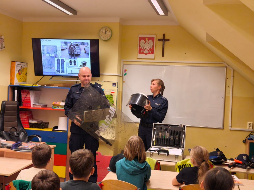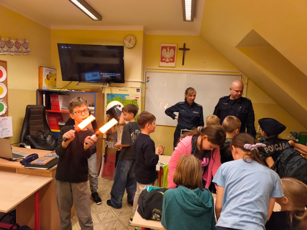 przedstawicielami policji. Do szkoły przybyło dwóch policjantów, którzy opowiedzieli