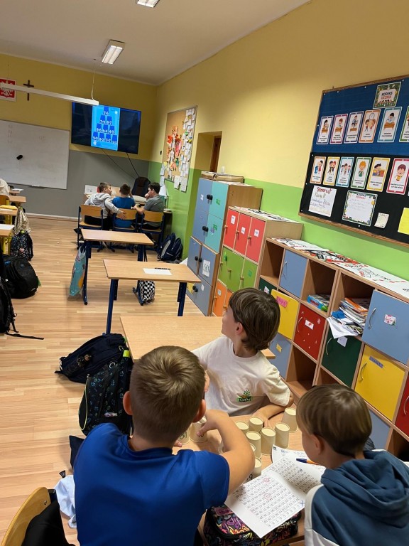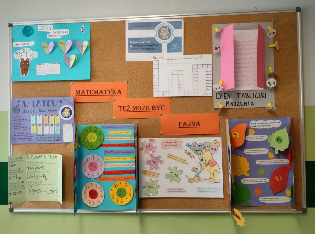Uczniowie klas 4–8 przygotowali kreatywne lapbooki i plakaty poświęcone tabliczce mnożenia, które udekorowały szkolne korytarze. Podczas przerw wszyscy mogli je oglądać, a przy okazji powtarzać działania. Do akcji przyłączyli się również uczniowie klas trzecich, którzy na lekcjach wykonywali różnorodne zadania związane z tabliczką mnożenia, aktywnie uczestnicząc w świętowaniu tego dnia. Dodatkowo klasy I–III miały przygotowane różne łamigłówki i zadania dostosowane do swojego poziomu, dzięki czemu także najmłodsi mogli bawić się matematyką i rozwijać swoje umiejętności.