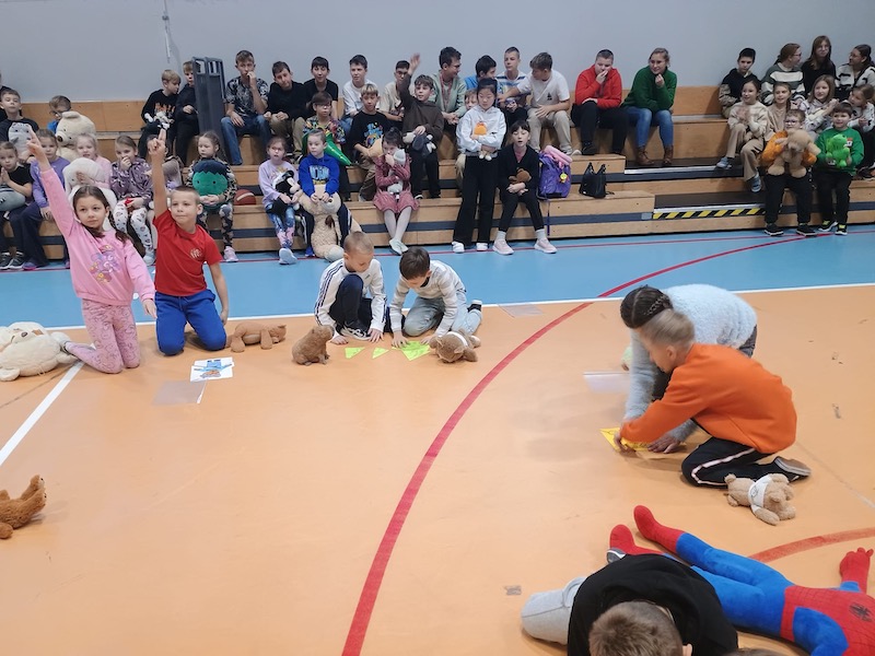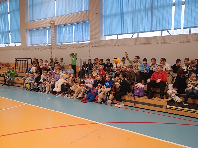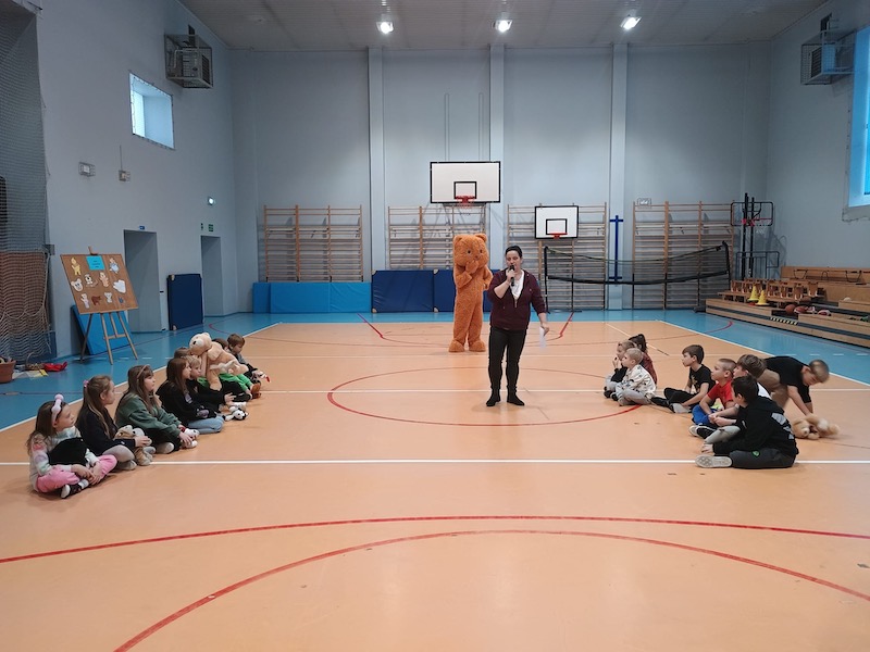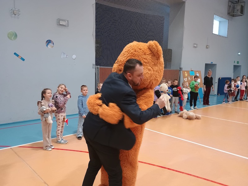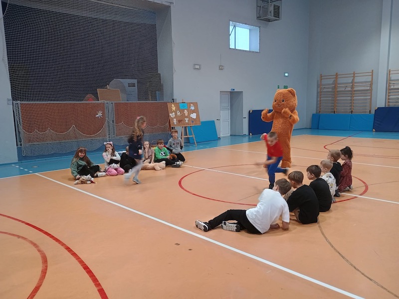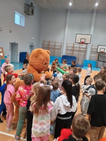 Największą atrakcją był Miś, który towarzyszył uczniom we wspólnej zabawie.