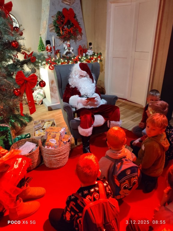 Na zakończenie tej pełnej uśmiechu przygody czekał na nich wyjątkowy gość - Święty Mikołaj. Spotkanie z nim wywołało ogromną radość i entuzjazm wśród dzieci, a wspólne chwile na długo pozostaną w naszej pamięci.