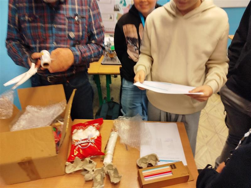 Podczas zajęć uczniowie realizowali także praktyczne zadanie polegające na zaprojektowaniu i zbudowaniu lądownika, którego zadaniem było bezpieczne „lądowanie” astronauty (w tej roli – jajka). Praca przebiegała w zespołach i obejmowała planowanie, analizę ryzyka, gospodarowanie ograniczonym budżetem oraz testowanie gotowych konstrukcji. Zadanie pozwoliło uczniom doświadczyć, jak ważna w pracy technicznej jest współpraca, odpowiedzialność i podejmowanie przemyślanych decyzji.