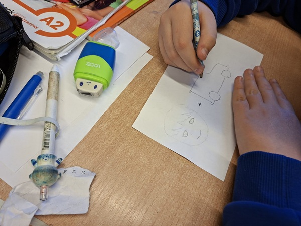 W dniu dzisiejszym na lekcji języka angielskiego ćwiczyliśmy z uczniami pisanie w sposób kreatywny i niecodzienny. Kreatywny, ponieważ umiejętności plastyczne i wyobraźnia uczniów przerasta nasze największe oczekiwania!