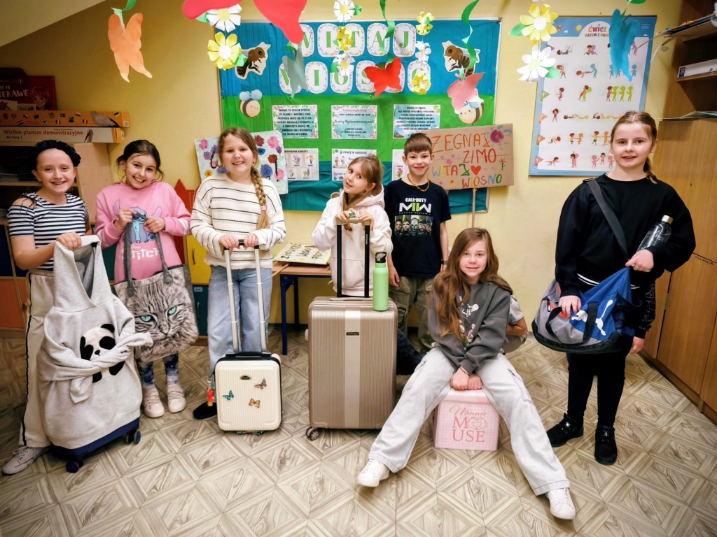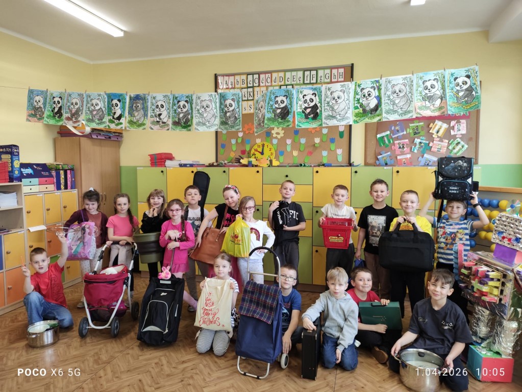 Zamiast tradycyjnych plecaków pojawiły się walizki, kosze, pudełka, a nawet… garnki i skrzynki! Pomysłowość naszych uczniów nie miała granic, a korytarze szkolne wypełniły się śmiechem i dobrą energią