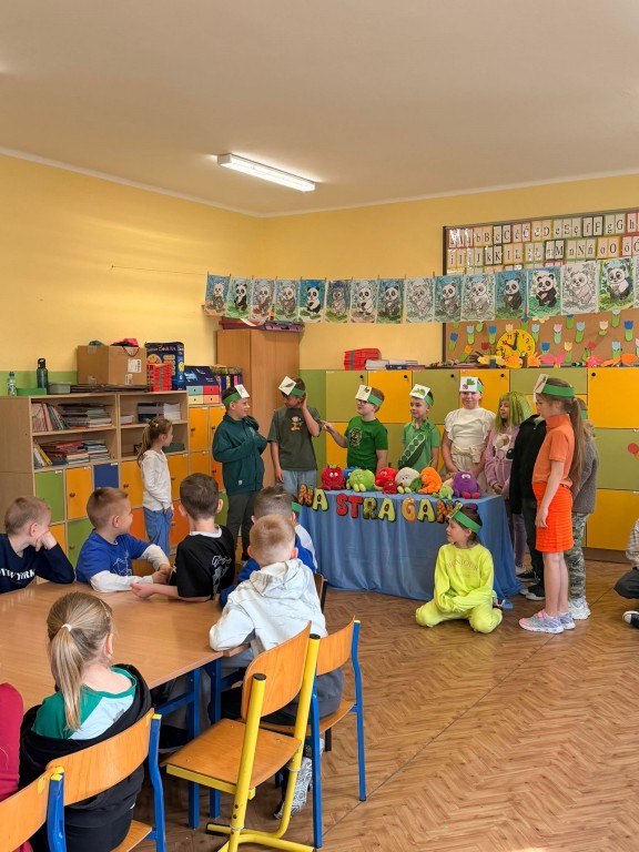klasy II zaprezentowali inscenizację pt. „Na straganie” Jana Brzechwy, która