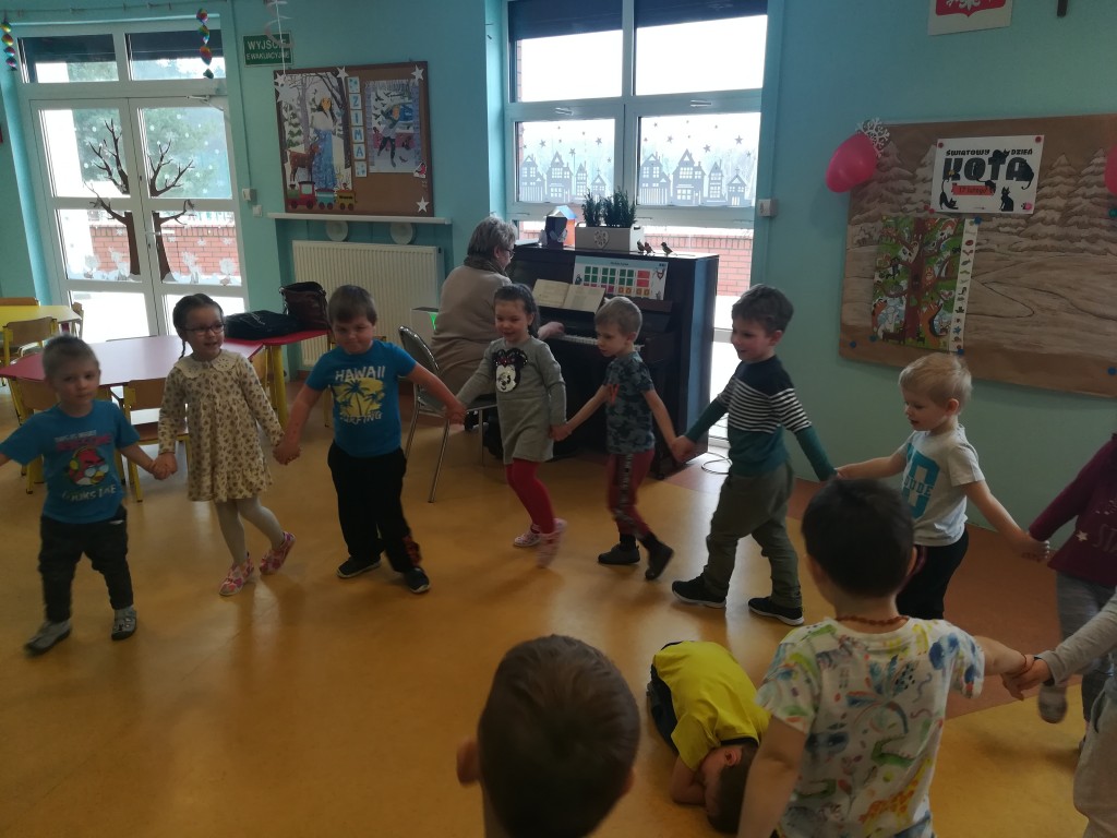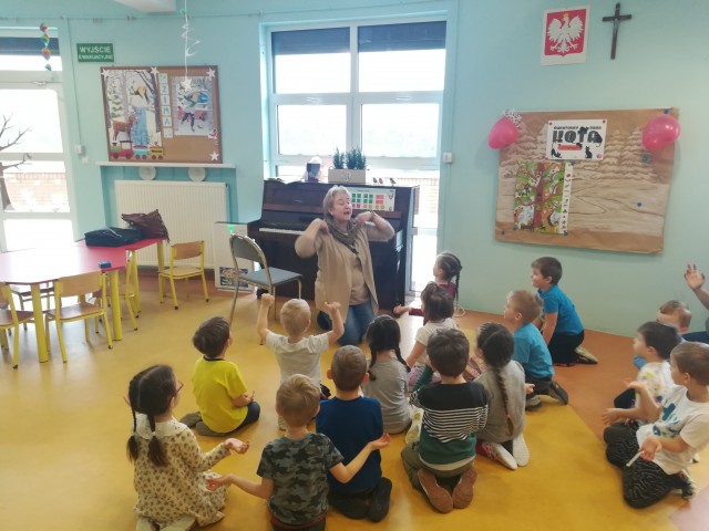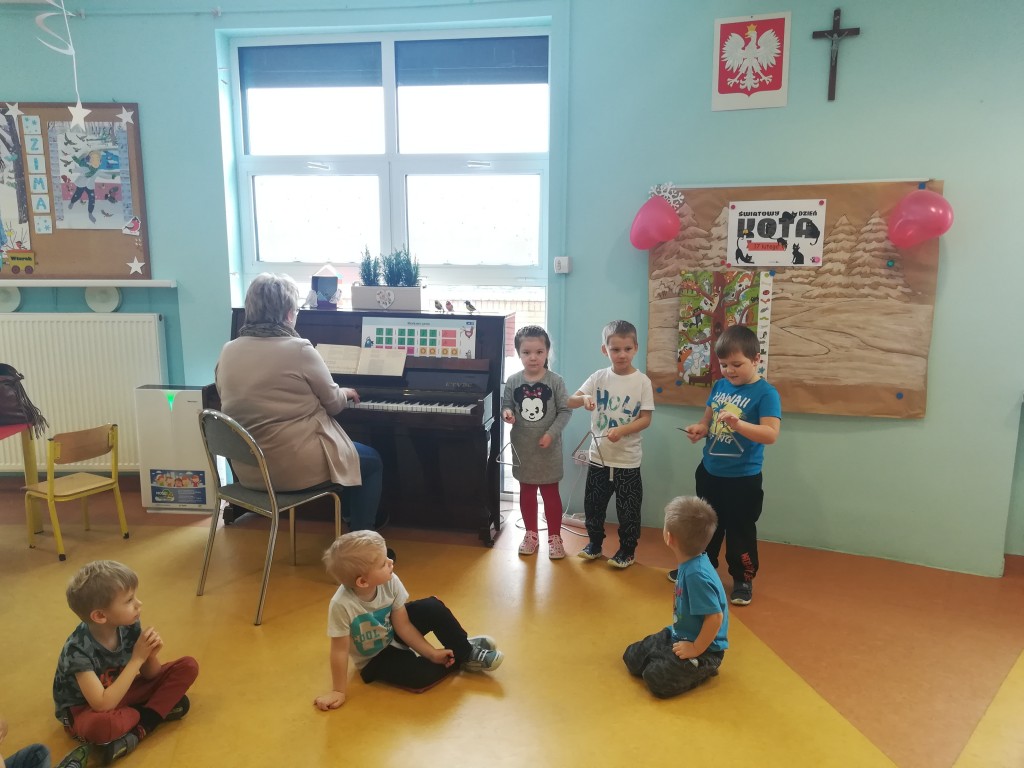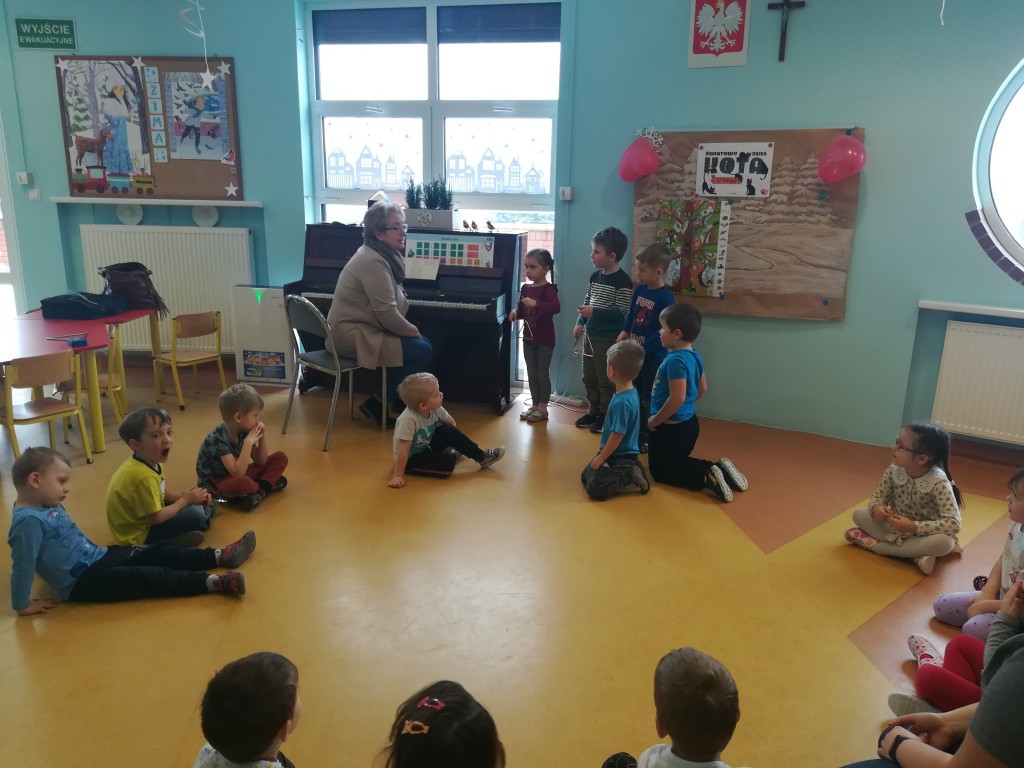 Małe Sówki uwielbiają muzykę oraz zabawy ruchowe. Dlatego zaprosiliśmy do nas Panią Lidkę, która opowiedziała nam o instrumentach, nauczyła nas prostej piosenki oraz zaprosiła nas do wspólnej zabawy przy dźwiękach muzyki. Na koniec pochwaliliśmy się wykonanymi przez nas instrumentami - brzmią idealnie.