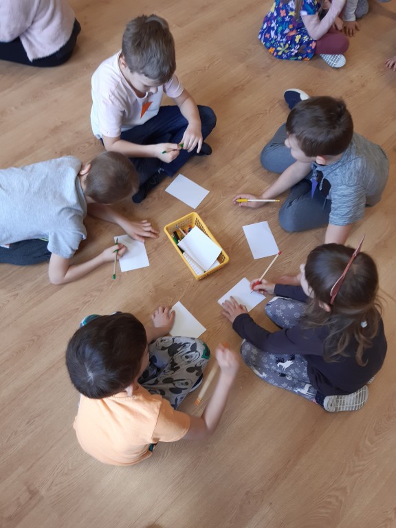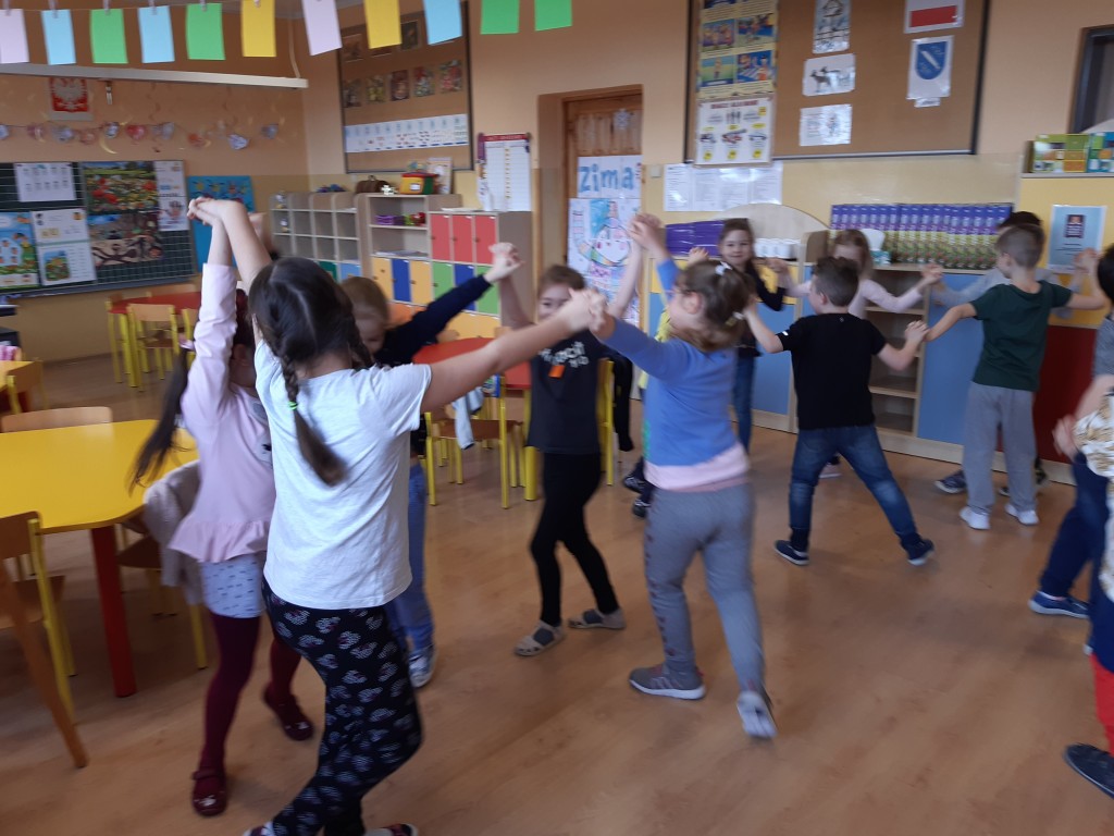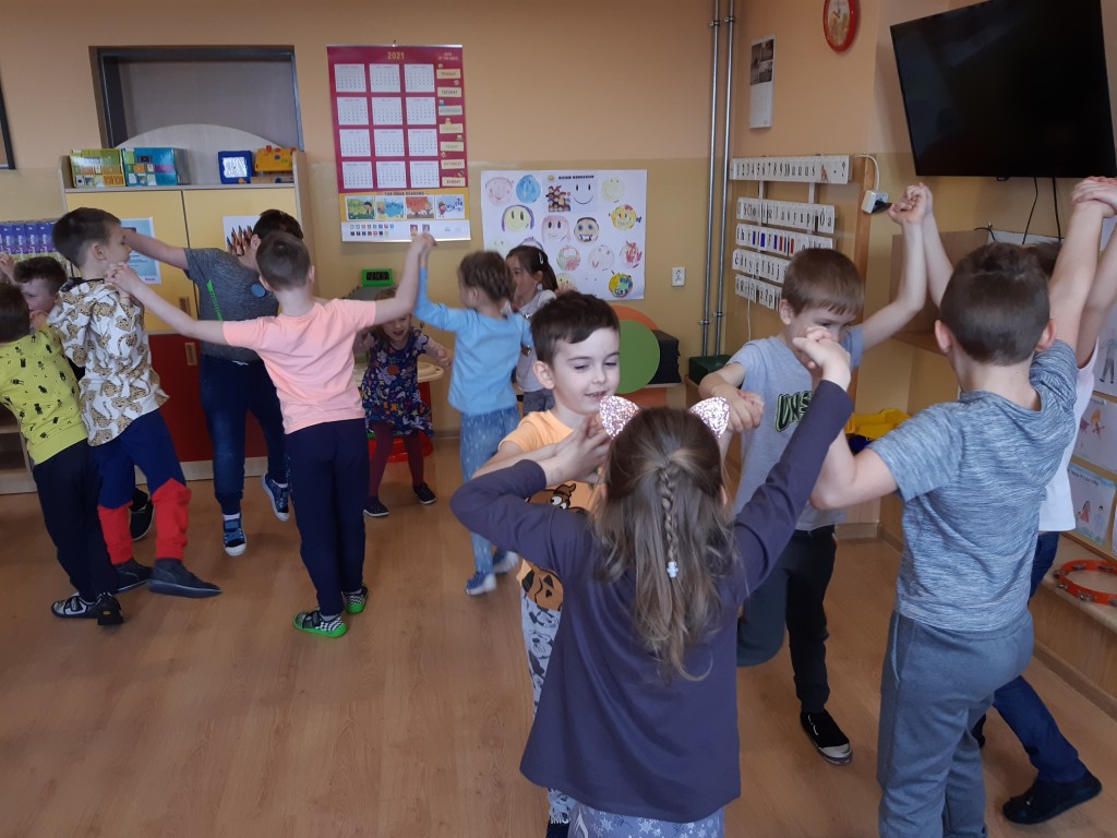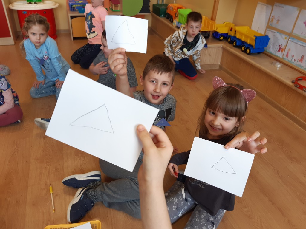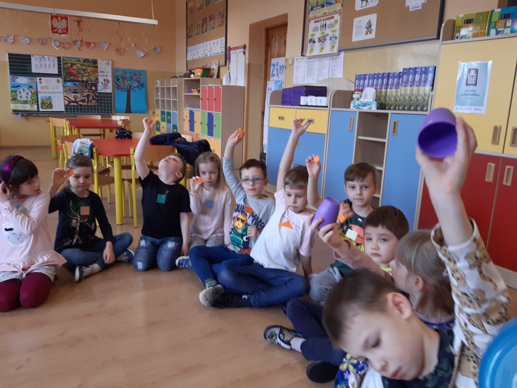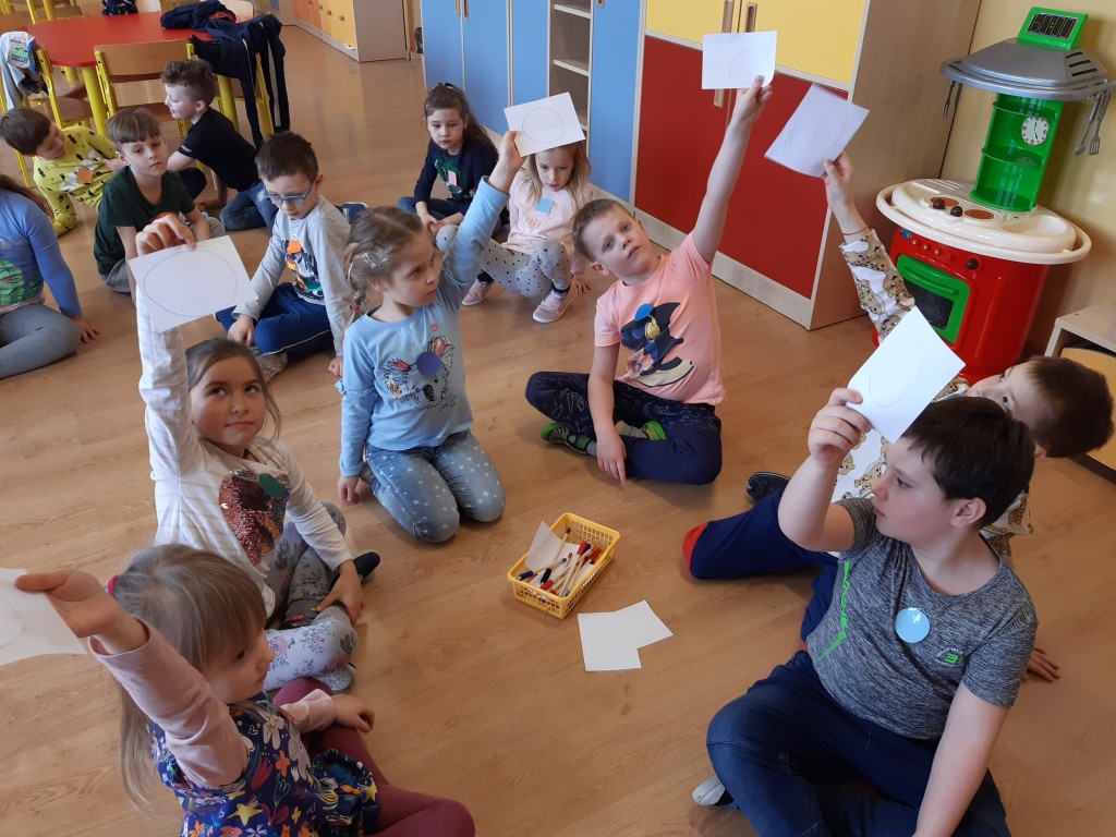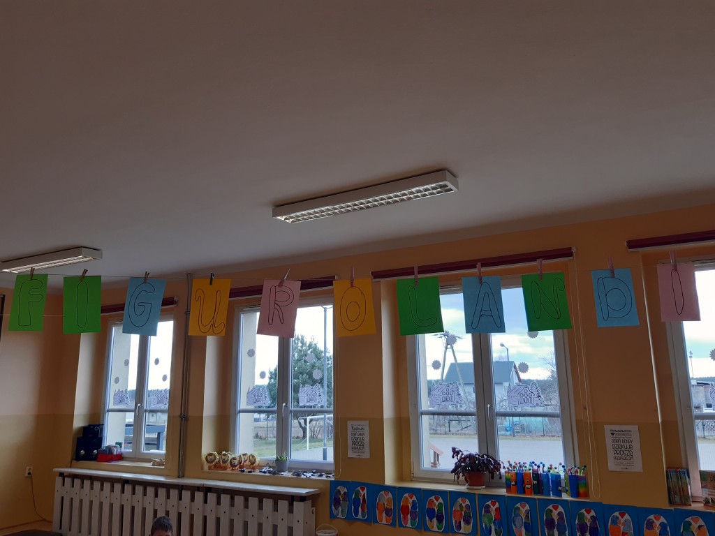 12 marca w Międzynarodowym Dniu Matematyki, przenieśliśmy się do krainy Figurolandii, poznaliśmy pajacyka Figurka, ale przede wszystkim, by pomóc odzyskać kształty. Mieliśmy do wykonania kilka trudnych zadań. Szukaliśmy ukrytych przedmiotów w różnych kształtach, segregowaliśmy je, tańczyliśmy, wykonaliśmy prace plastyczne wg wskazówek Figurka. Wszystko się udało znakomicie, Figurolandia odzyskała figury, a my wróciliśmy do przedszkola. To była cudowna przygoda.