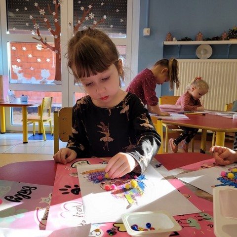 Na zajęciach plastycznych dzieci tworzyły projekty swoich tortów urodzinowych. Rozmawialiśmy o ulubionym smaku tortu i o przyjęciach urodzinowych.