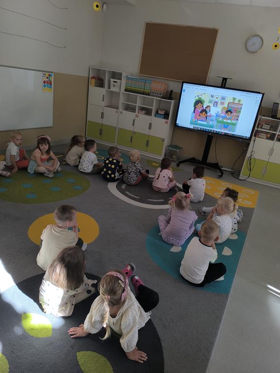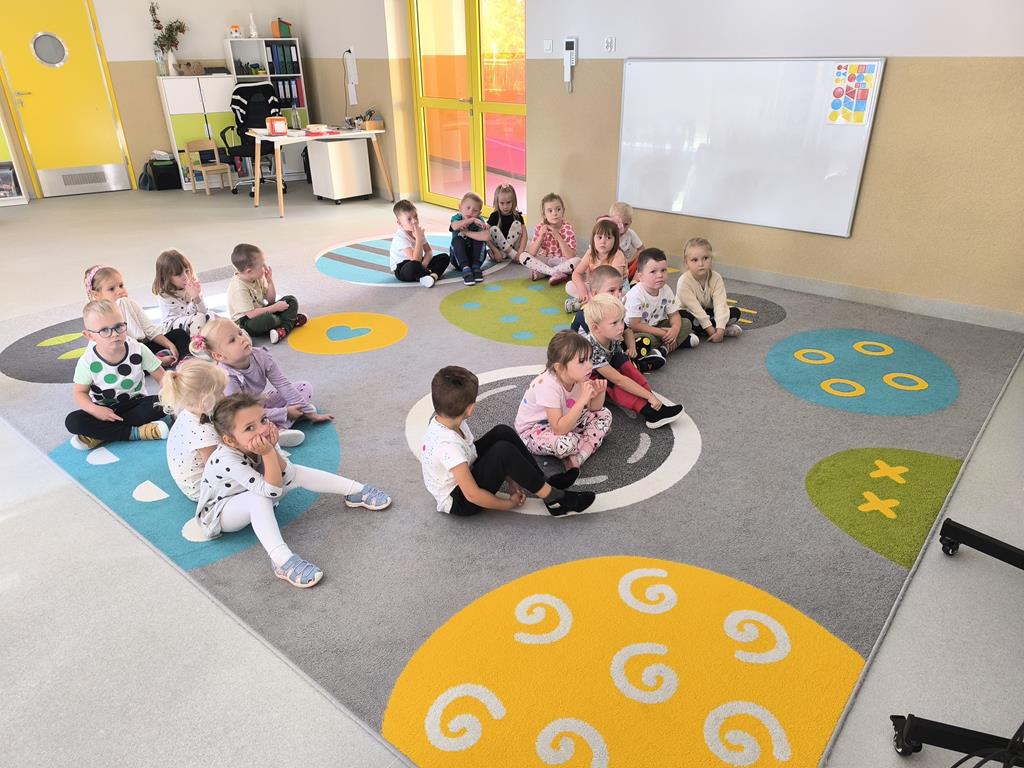 Następnie przedszkolaki wysłuchały pięknej historii o Vashti – dziewczynce, która dzięki małej kropce odkryła w sobie artystyczny talent i odwagę, by tworzyć. Opowiadanie było inspiracją do rozmowy o tym, że każdy z nas ma w sobie coś wyjątkowego – wystarczy tylko to odkryć!