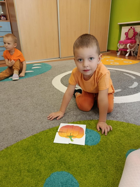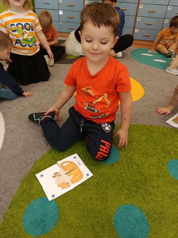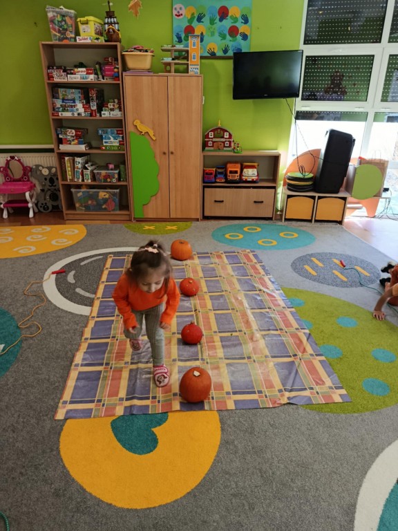 W grupie „Motylki” świętowaliśmy wesoły Dzień Dyni! Dzieci brały udział w różnorodnych zabawach – toczyły dynie po linie, pokonywały dyniowy tor przeszkód oraz uczestniczyły w zabawach dydaktycznych. Nie zabrakło też pamiątkowej sesji zdjęciowej przy jesiennej dekoracji, pełnej kolorów i uśmiechów. To był dzień pełen radości i wspólnej zabawy! ![]()