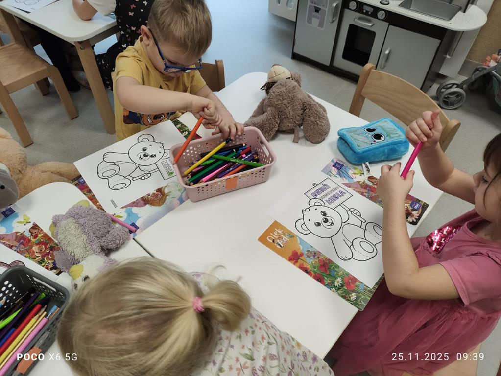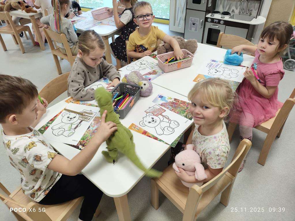 W grupie „Liski” obchodziliśmy radosny Dzień Pluszowego Misia. Dzieci przyniosły do przedszkola swoje ulubione pluszaki i z dumą je prezentowały. Podczas zajęć maluchy brały udział w zabawach ruchowych, słuchały opowieści o misiach oraz wykonywały tematyczne prace plastyczne. W sali panowała ciepła, przyjazna atmosfera, a wspólne świętowanie sprawiło dzieciom wiele radości. To był pełen uśmiechów i dobrej zabawy dzień w naszej grupie.