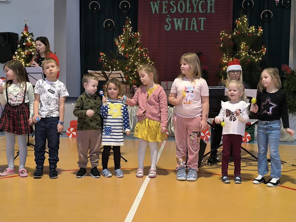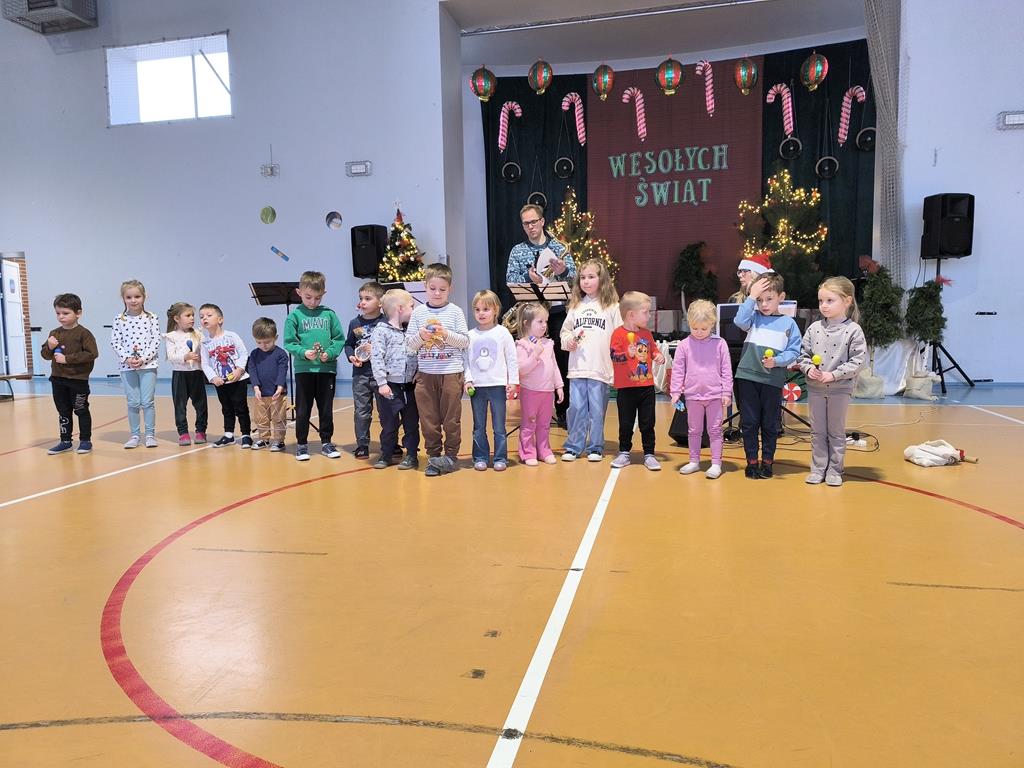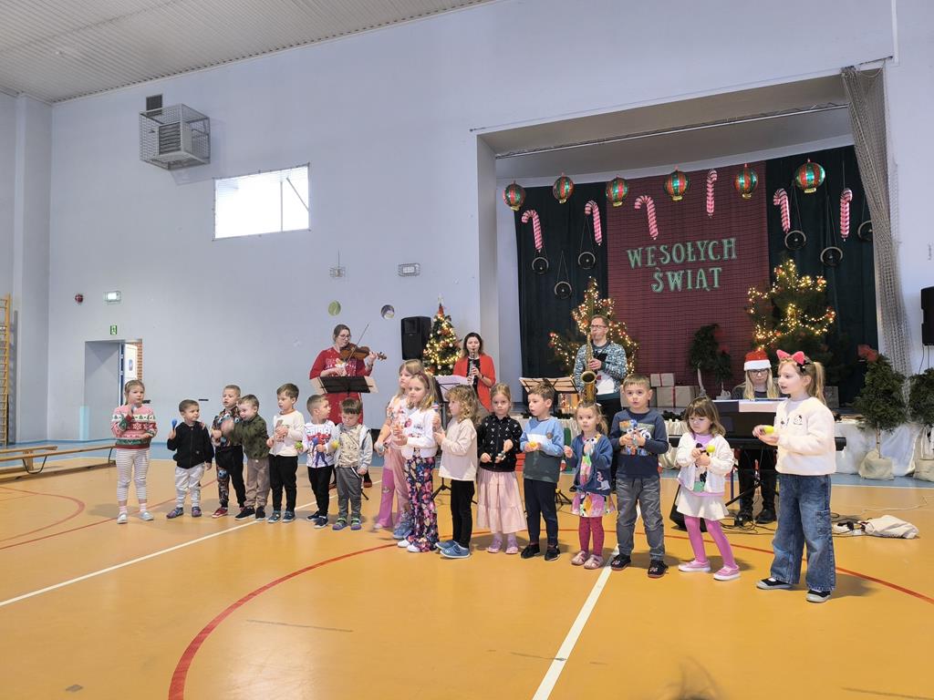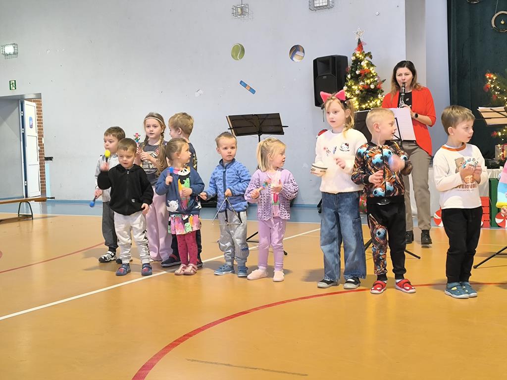 W naszym przedszkolu odbyło się wyjątkowe spotkanie umuzykalniające o tematyce świątecznej. Dzieci miały okazję poznać różnorodne instrumenty muzyczne, dowiedzieć się, jak brzmią oraz w jaki sposób można na nich grać. Przedszkolaki z dużym zainteresowaniem słuchały prezentowanych dźwięków i aktywnie uczestniczyły w zajęciach.