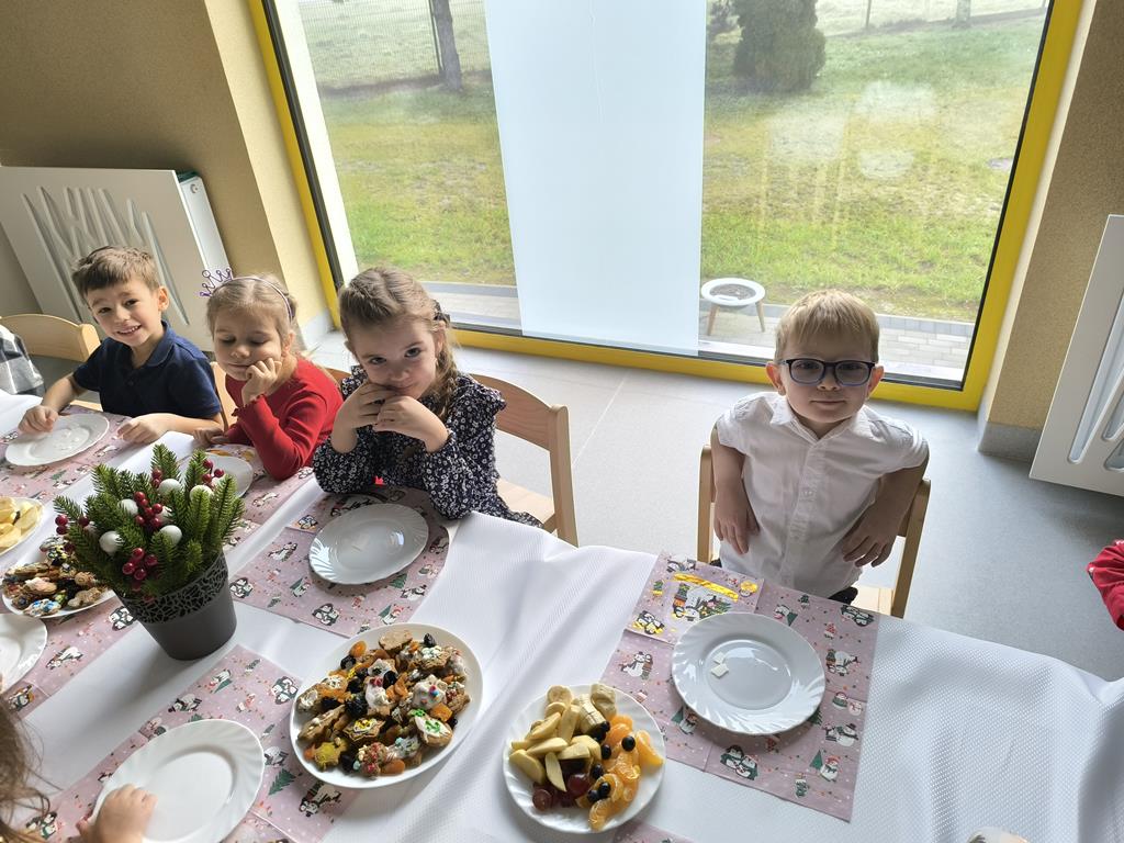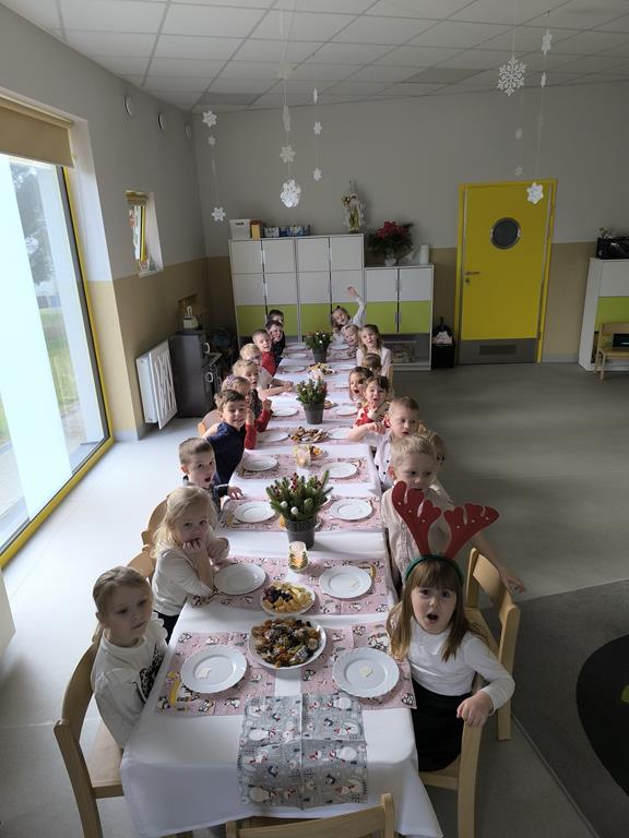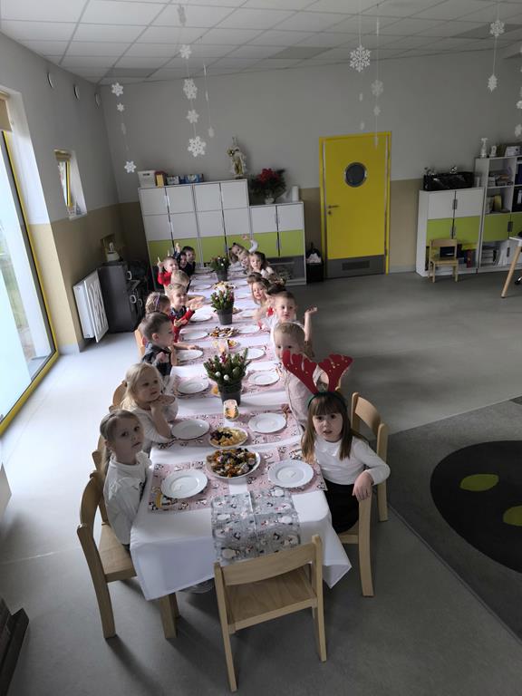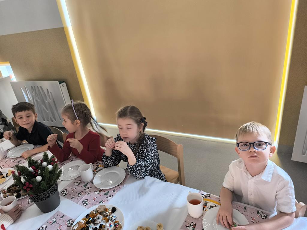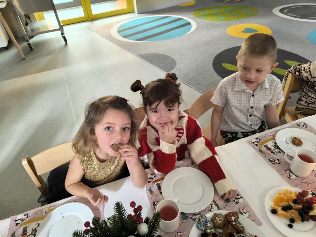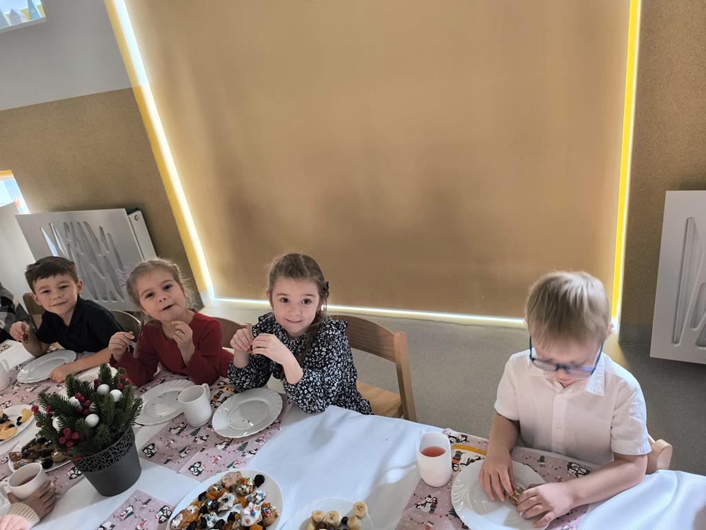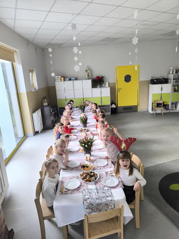 W naszej grupie odbyła się uroczysta wigilia przedszkolna. Dzieci w radosnej, świątecznej atmosferze śpiewały kolędy i pastorałki, dzieląc się wspólną radością z nadchodzących Świąt Bożego Narodzenia. Ważnym momentem spotkania było wspólne degustowanie pięknie ozdobionych pierników, które dzieci przygotowały wcześniej. Grupowa wigilia była czasem bliskości, życzliwości oraz kultywowania świątecznych tradycji.