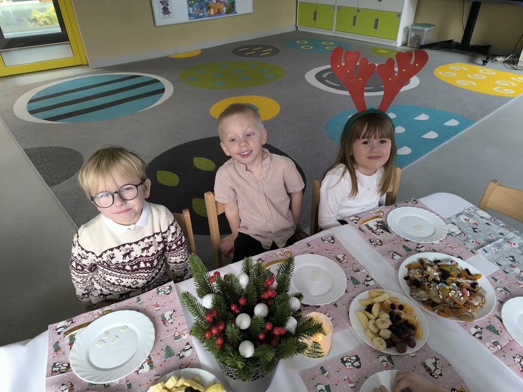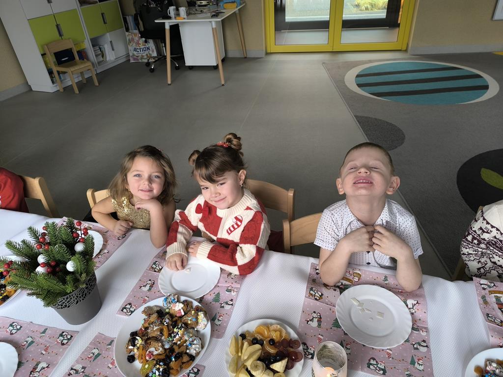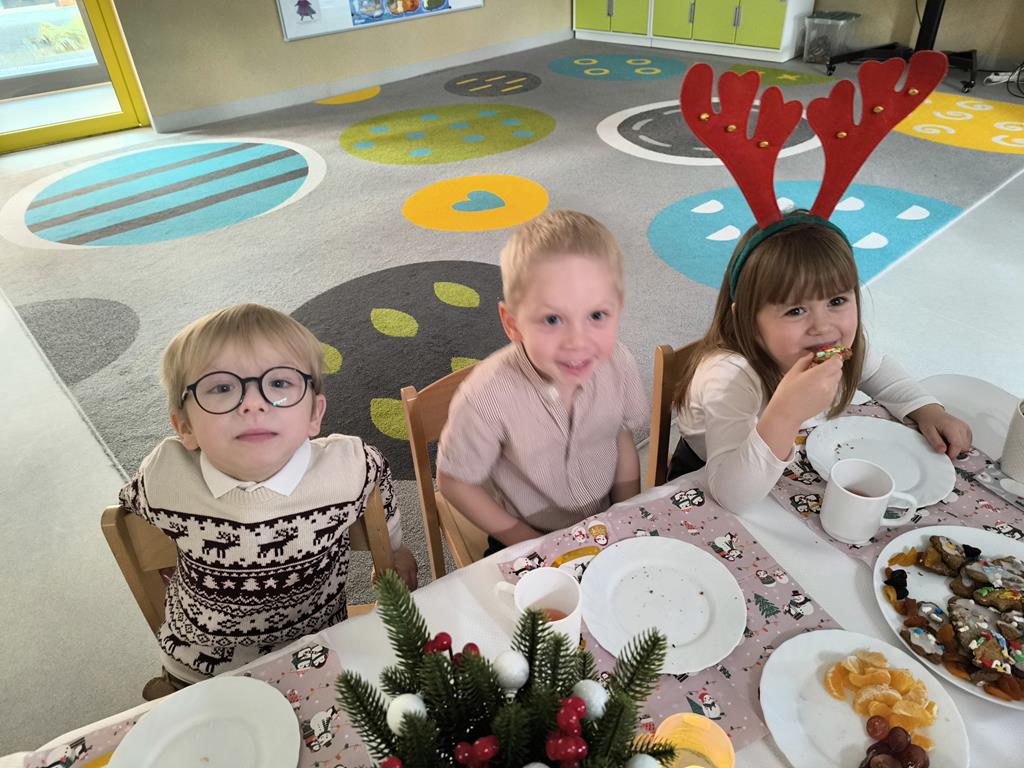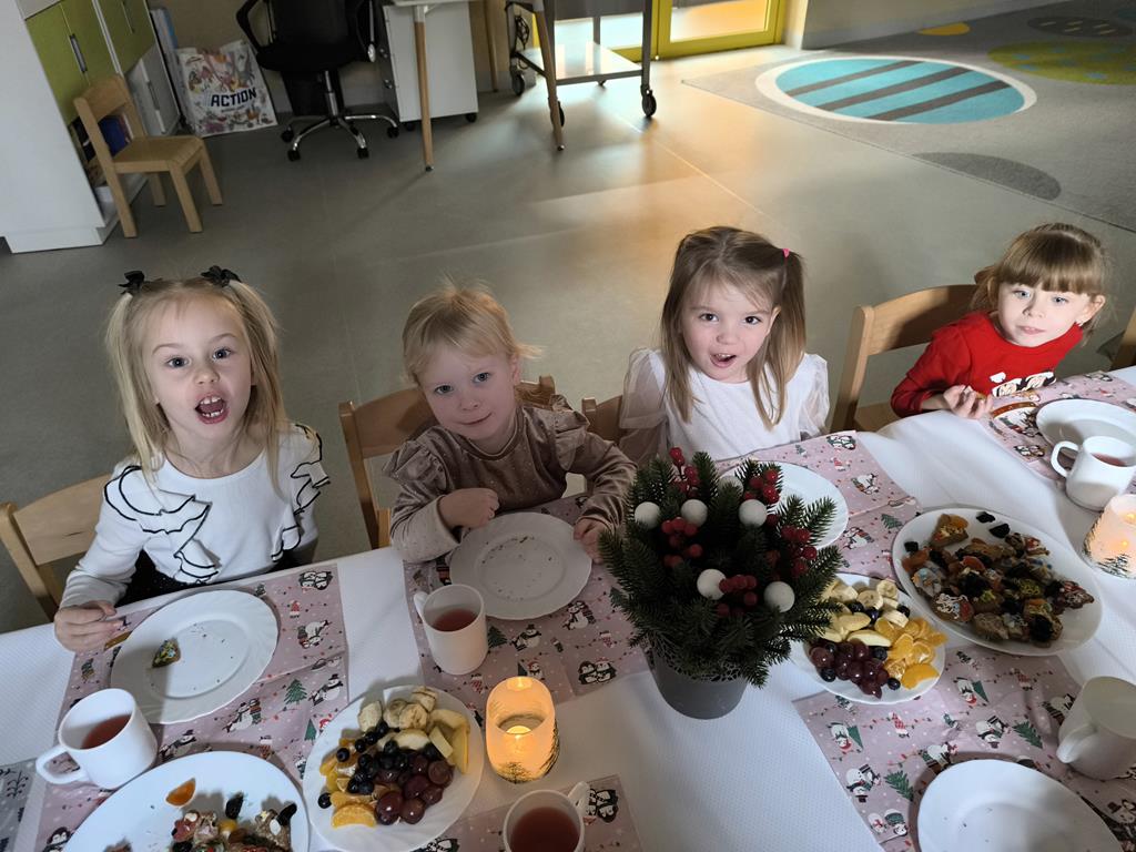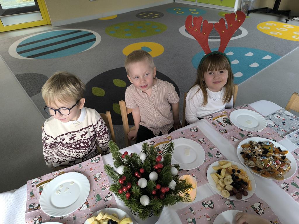W naszej grupie odbyła się uroczysta wigilia przedszkolna. Dzieci w radosnej, świątecznej atmosferze śpiewały kolędy i pastorałki, dzieląc się wspólną radością z nadchodzących Świąt Bożego Narodzenia. Ważnym momentem spotkania było wspólne degustowanie pięknie ozdobionych pierników, które dzieci przygotowały wcześniej. Grupowa wigilia była czasem bliskości, życzliwości oraz kultywowania świątecznych tradycji.