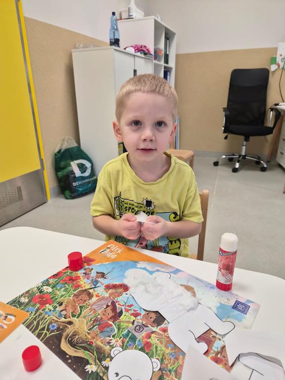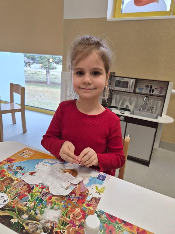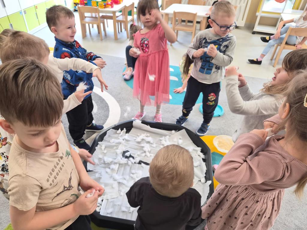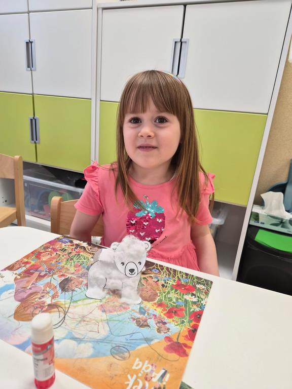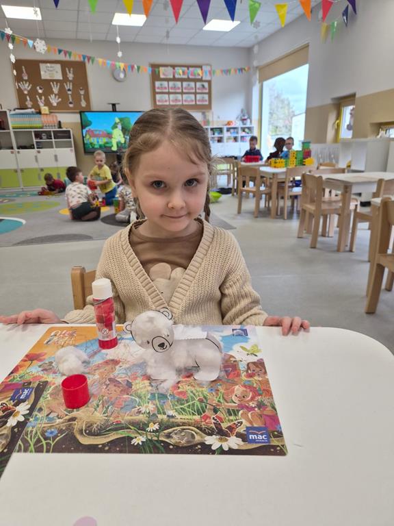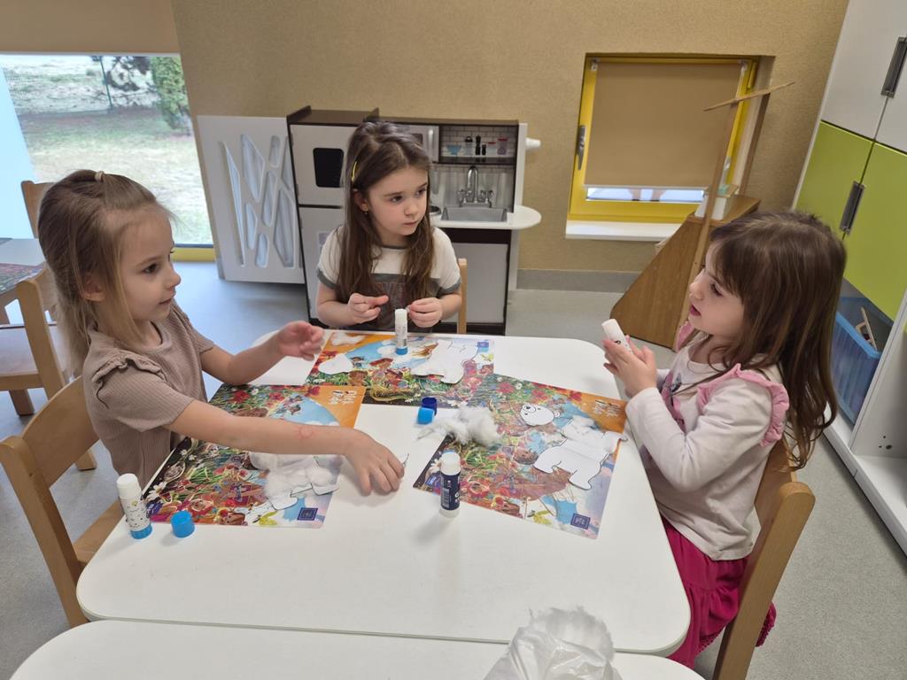 Najwięcej radości sprawiło dzieciom wspólne tworzenie makiety Antarktydy. Z wielkim zaangażowaniem budowały lodową krainę i umieszczały w niej zwierzęta. Była to wspaniała okazja do rozwijania wyobraźni, kreatywności oraz nauki poprzez zabawę.