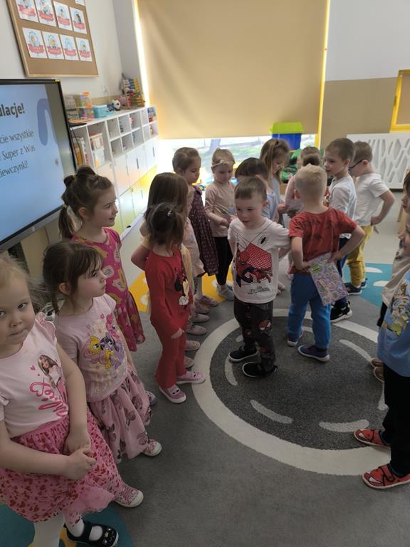 W naszej grupie świętowaliśmy Dzień Kobiet w bardzo wesołej atmosferze. Dziewczynki musiały wykonać kilka zadań i wykazać się różnymi umiejętnościami. Sprawdzały swoje zdolności w liczeniu, tańcu oraz w teście wiedzy o księżniczkach.