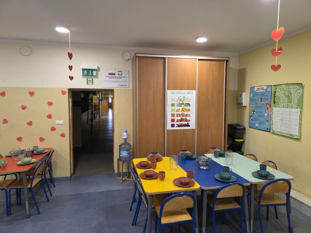 Zupa – koperkowa z ziemniakami. Makaron spaghetti z sosem mięsno-warzywnym i żółtym serem, kompot owocowy.